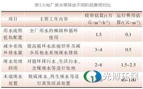 其中前3个阶段可称为深度节水阶段,火电厂污水零排放不同阶段的投资及运行费用对比如表1所示。