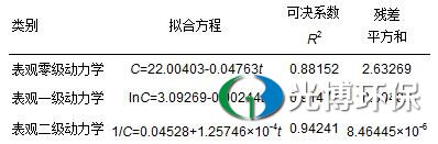 比较各级动力学的相关系数R2知TOC去除更符合表观二级动力学,化学反应速率常数为1.25746×10-4 L · mg-1 · min-1,与反应物浓度的二次方成正比.