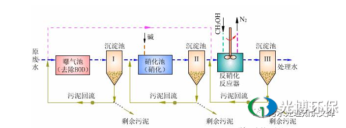 第一,短程硝化反硝化技术。此种方法可以在同一个反应器内进行,先于有氧条件反应,通过氨氧化细菌促使氨氮转换成亚硝酸盐,避免亚硝酸盐的进一步氧化,然后便可以在缺氧条件下,利用有机物或者外加碳源,促使亚硝酸盐进行反硝化反应,最终生成氮气。